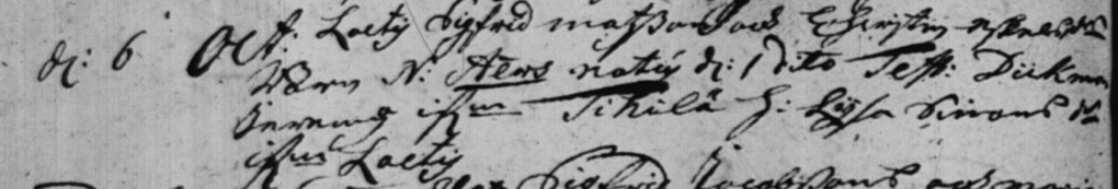 Merkinnässä lukee, että lokakuun 6. on syntynyt poika Aers paikassa Lactis, isä Sigfrid Matsson, äiti Chirstin Eskilsdr.