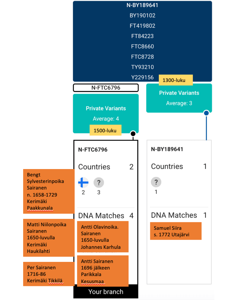 Uutta tietoa tuo haara ei paljonkaan tuonut, sillä Sairasten haaran ja uuden haaran yhteinen esi-isä on aika-arvion mukaan (FTDNAn Discover) elänyt noin 1300-luvulla.
