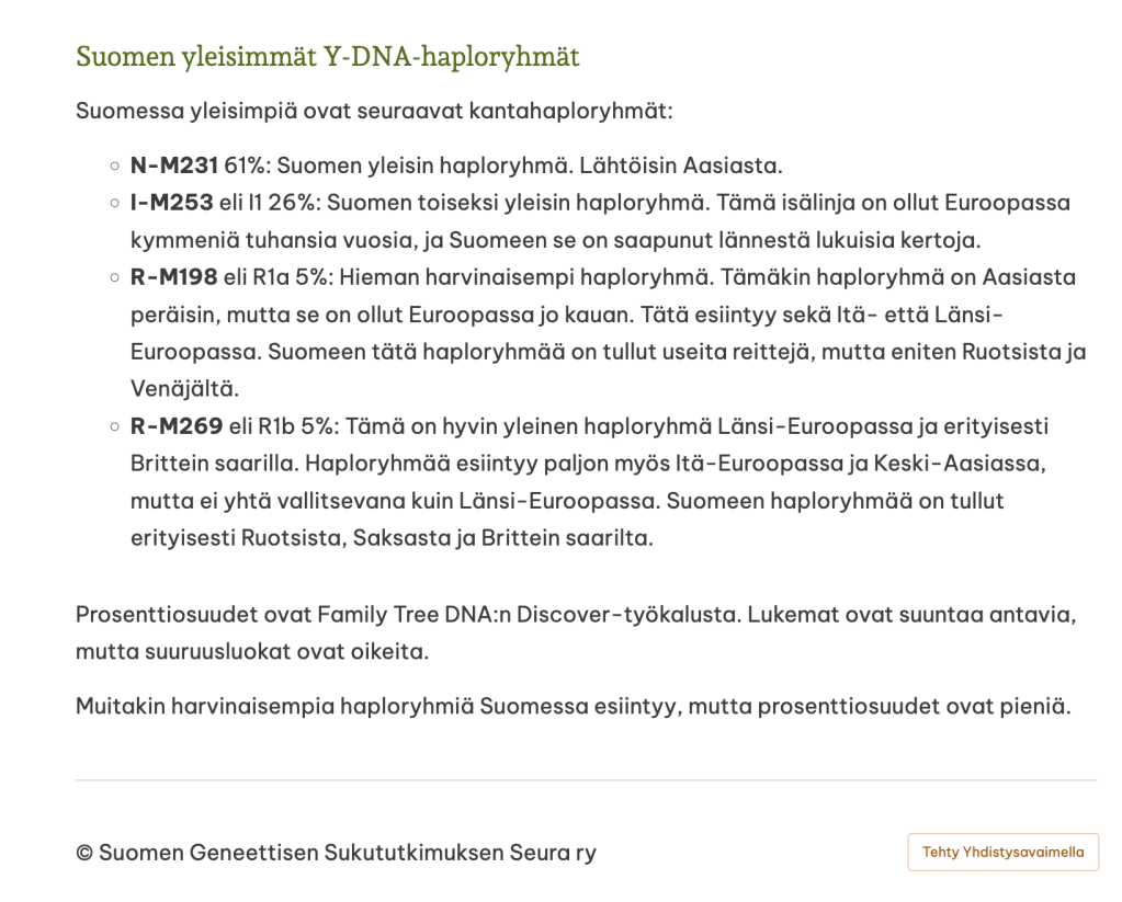 Olen ilmeisesti itsekin Korpilahdelta kotoisin olleen isoisäni kautta I-M253 haploa ja aion teettää piakkoin BigY-testin.