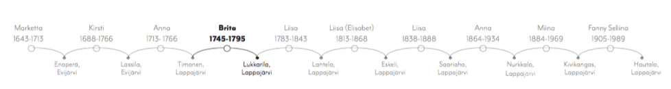 Brita syntyi vauraaseen Timosen taloon Lappajärvelleä loppukesästä 1745 ja sai nimensä isänsä äidin Brita Pietarintytär Kirjavaisen/Nykäsen (1688-1786) mukaan. Hänen syntymänsä aikaan elettiin rauhan aikaa, sillä vain muutama vuosi ennen Britan syntymää sodittu Hattujen sota (1741-43) oli takanapäin. Timosen talossa asui kolmen sukupolven suurperhe, johon kuuluivat Britan isän vanhemmat Paavo Erkinpoika Harju/Timonen (1687-1762) sekä vaimonsa Brita… Jatka lukemista Brita Paavontytär Timonen 1745-95
